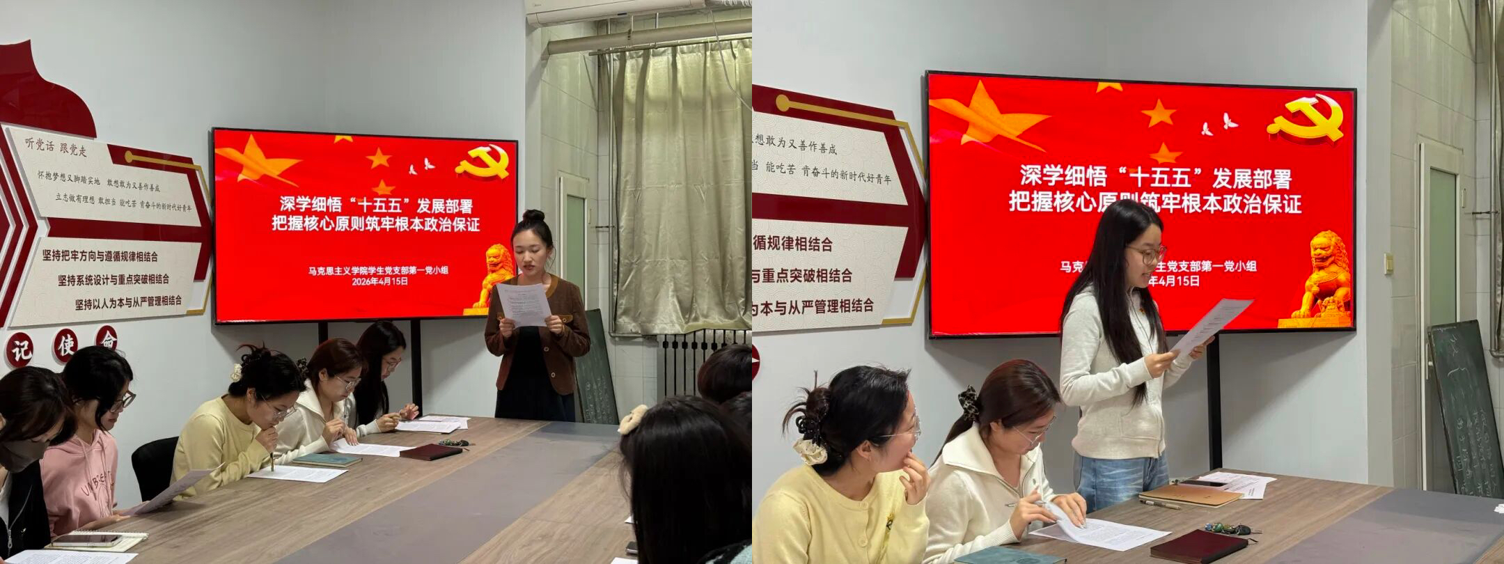 第一党小组在“一站式”学生社区开展线下集中学习,通过原文领学与集中研讨,聚焦“十五五”规划的关键部署。党员结合马克思主义理论专业实际,探讨如何将理论研究和思政宣讲对接国家战略需求,进一步明确了学习研究方向与个人行动路径。