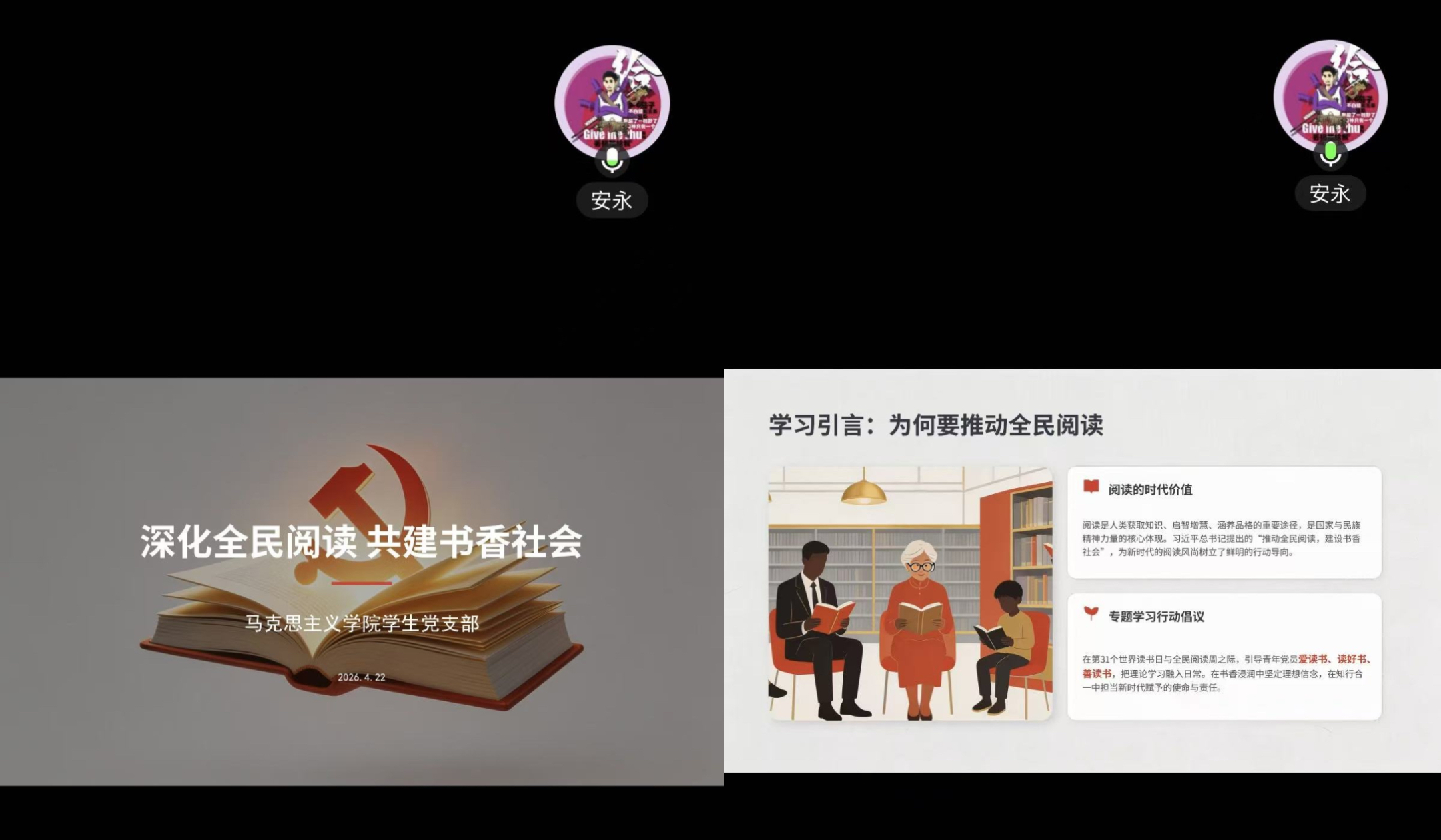 第一党小组充分利用线上平台的灵活性,在小组群内开展了深入的专题研讨。党员同志们结合马克思主义理论专业背景,围绕“如何响应‘爱读书、读好书、善读书’号召”这一核心议题,进行了热烈而有序的交流。在思想的云端碰撞中,进一步明确了青年党员在全民阅读中肩负的责任与引领使命。