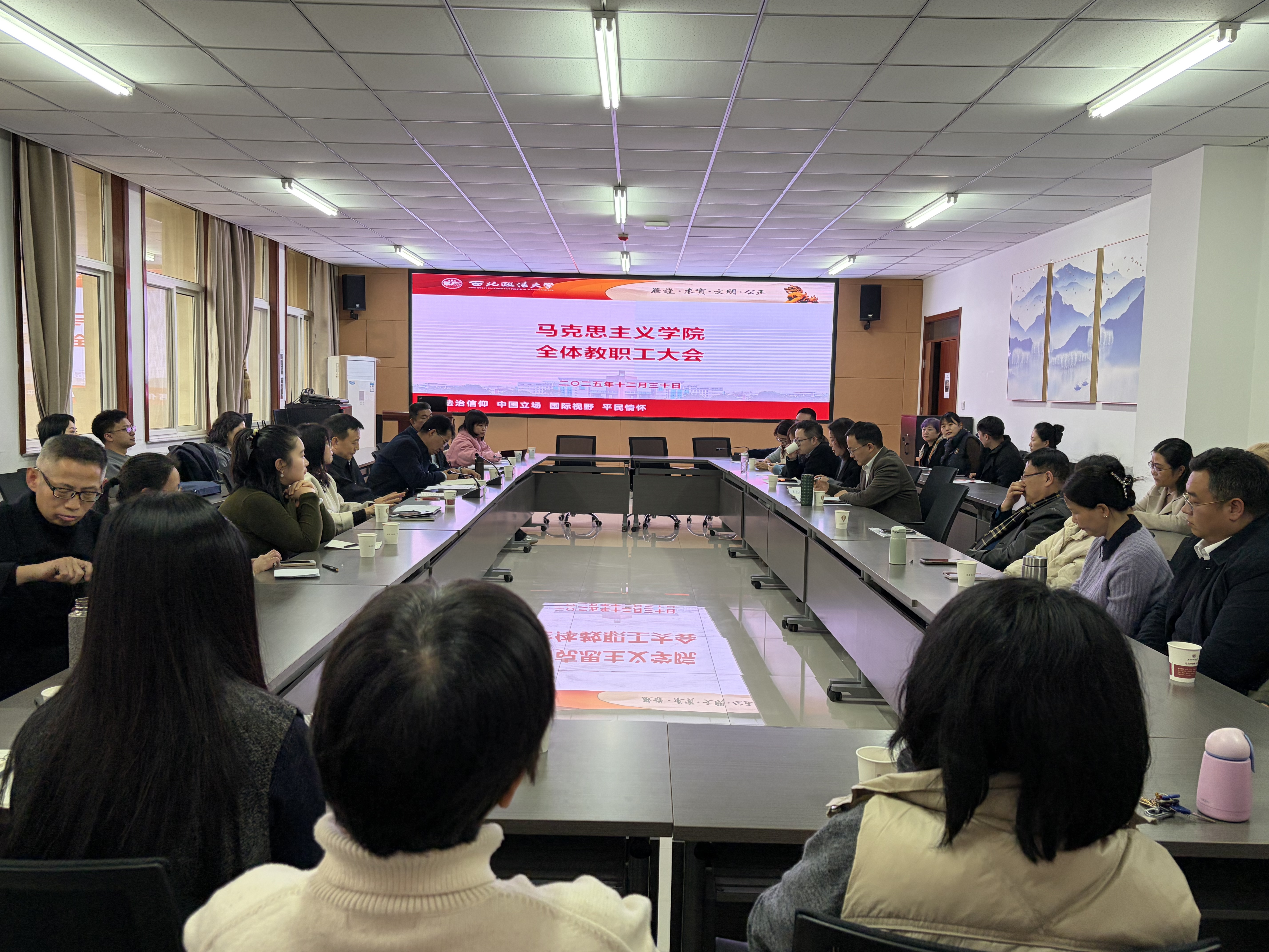 李政敏结合近期重点工作作出安排,他表示,要高质量完成党支部书记述职评议等年终考核工作,充分发挥考核的激励导向作用;要切实筑牢安全防线,扎实做好近期师生安全稳定及意识形态工作,及时排查化解各类风险隐患;要持续推进学院科研平台建设,整合优质资源、明确研究方向、强化团队协作,为学院发展注入新动力。
