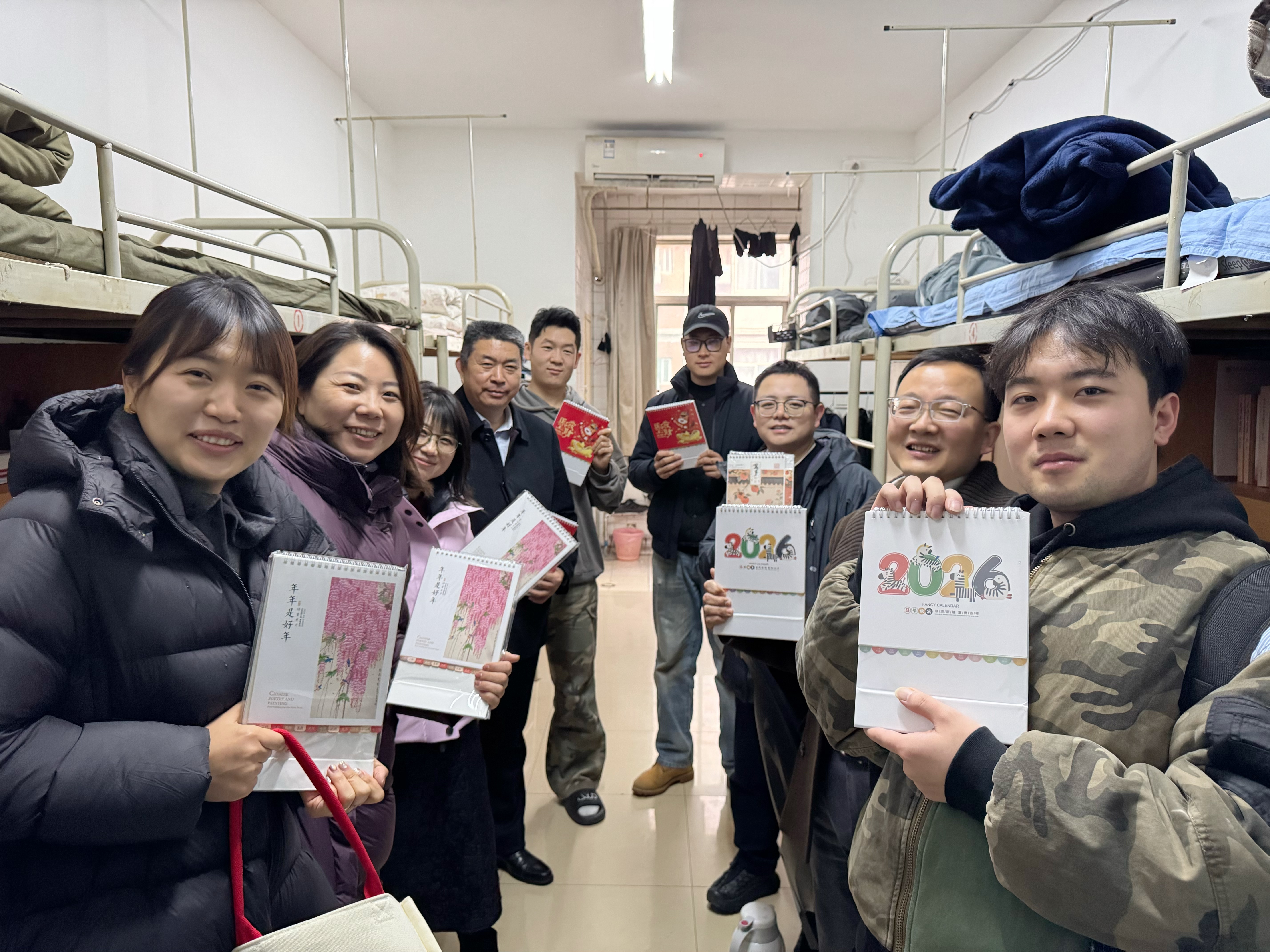 走访过程中,学院领导们向同学们致以新年祝福,送上新年礼物,并与大家亲切交谈,详细了解同学们的学习科研进展和日常生活情况,认真倾听大家在课程学习、科研安排及生活保障等方面的意见建议。其间,恰逢两位同学生日,老师们为其送上了生日蛋糕和真挚祝福,在新年将至之际为同学们增添了一份温暖与惊喜,宿舍内洋溢着温馨而愉快的节日氛围。