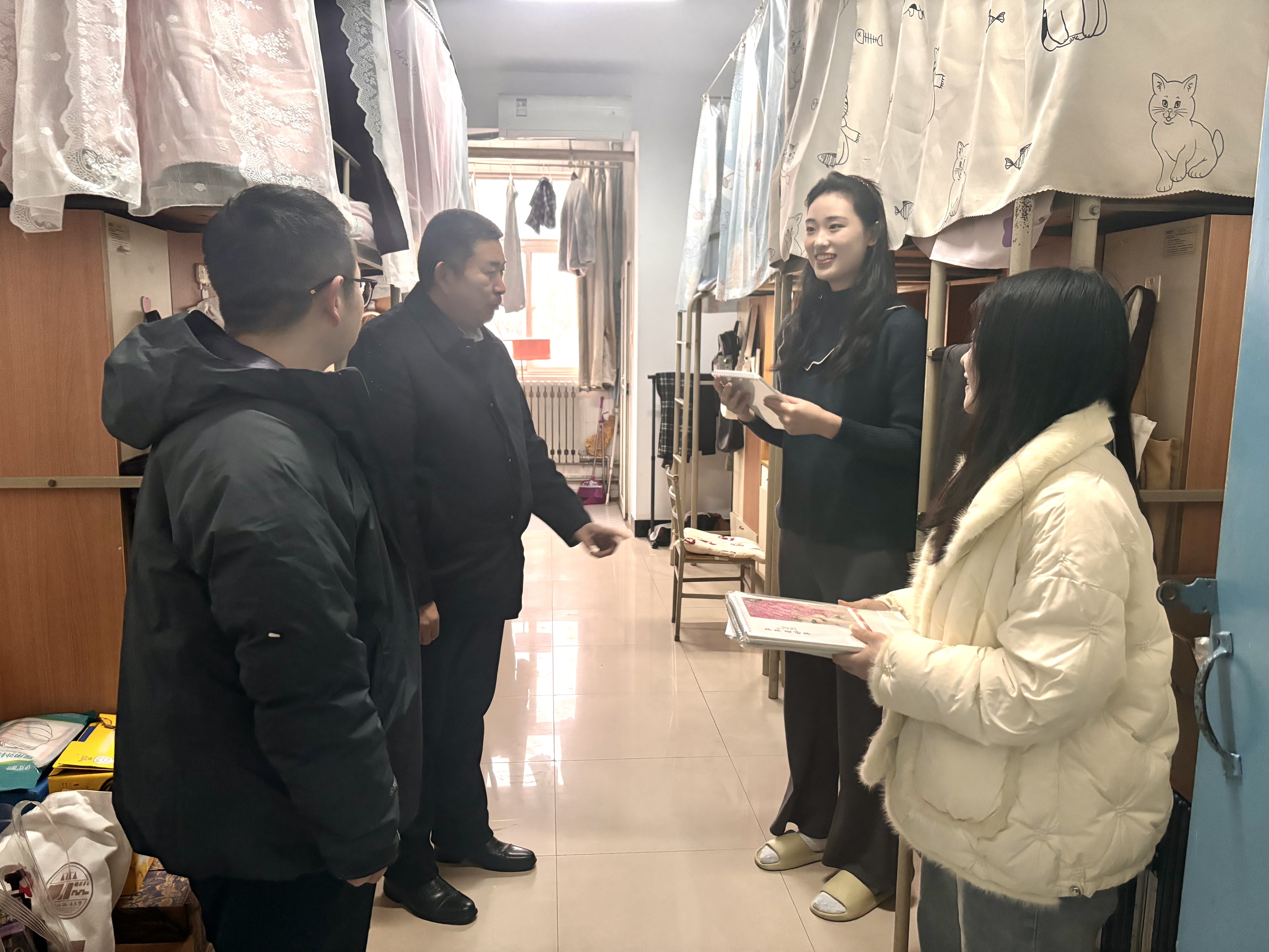 在元旦佳节来临之际,为深入了解研究生学习生活情况,加强师生沟通交流,落实安全稳定工作要求,12月31日,学院党委书记李政敏、常务副院长郭淼、副院长鞠娟、李伟弟、徐鹏以及辅导员刘栩源一行深入研究生宿舍,开展走访慰问。